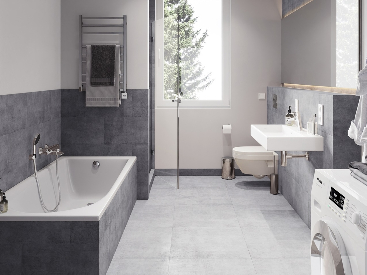 -Marken-Sanitärprodukte und moderne Fliesen in Bad und / oder Gäste WC