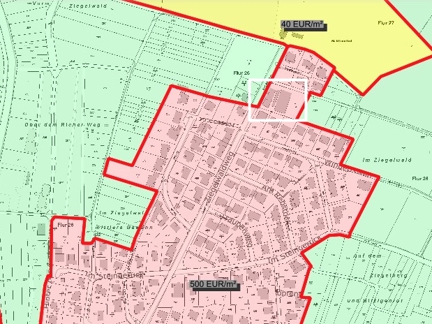 Der Bodenrichtwert liegt bei 500 €/m². Gebote darunter können nicht berücksichtigt werden.