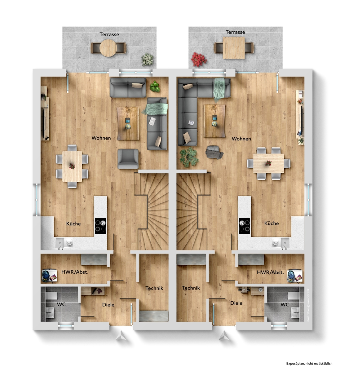 Die Doppelhaushälften überzeugen durch eine langlebige Bauweise und eine moderne, praktische Ausstattung – ideal für Familien oder Paare, die Wert auf Komfort und Energieeffizienz legen.
