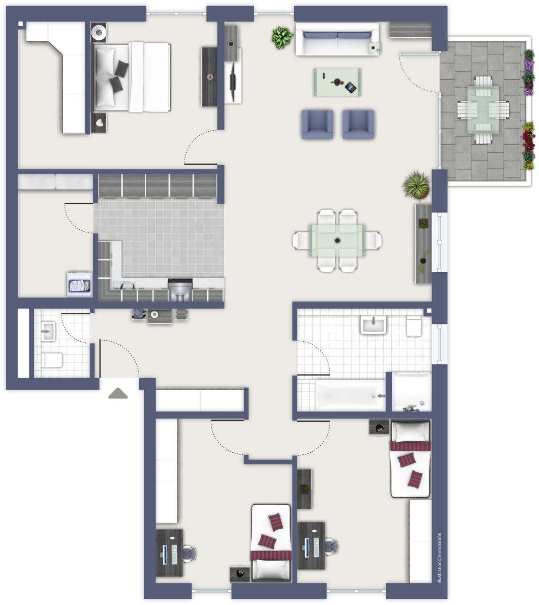 -3 Schlafzimmer plus großzügiger Wohn-/Essbereich
