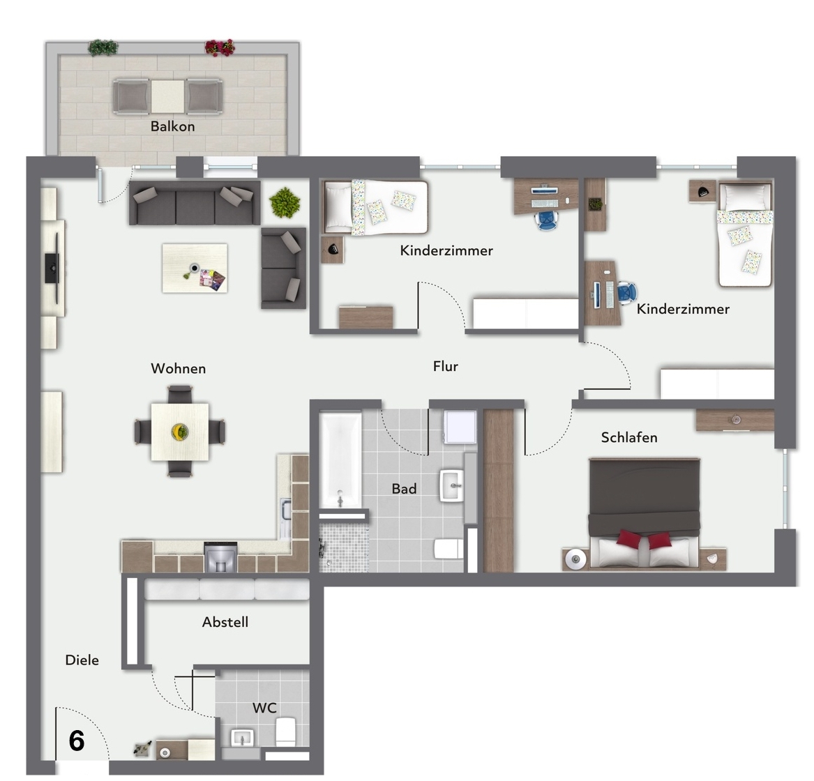 Willkommen zuhause. Diese geräumige 4-Zimmer-Wohnung verfügt über drei Schlafzimmer, Gäste-WC, Abstellraum und einen Balkon, der zum Entspannen einlädt.